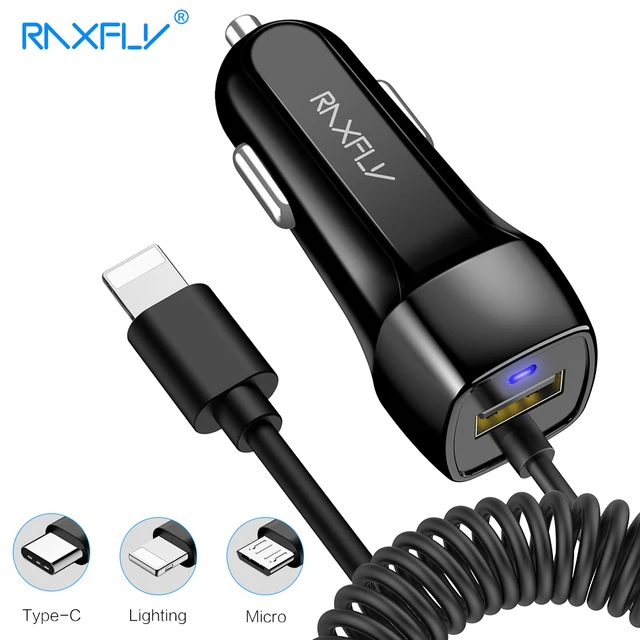 Best Price RAXFLY USB Car Charger for iPhone X 8 5s Fast USB Charger with Micro USB Type C Lighting Cable Quick Charge for Samsung S9 S8 Best Price